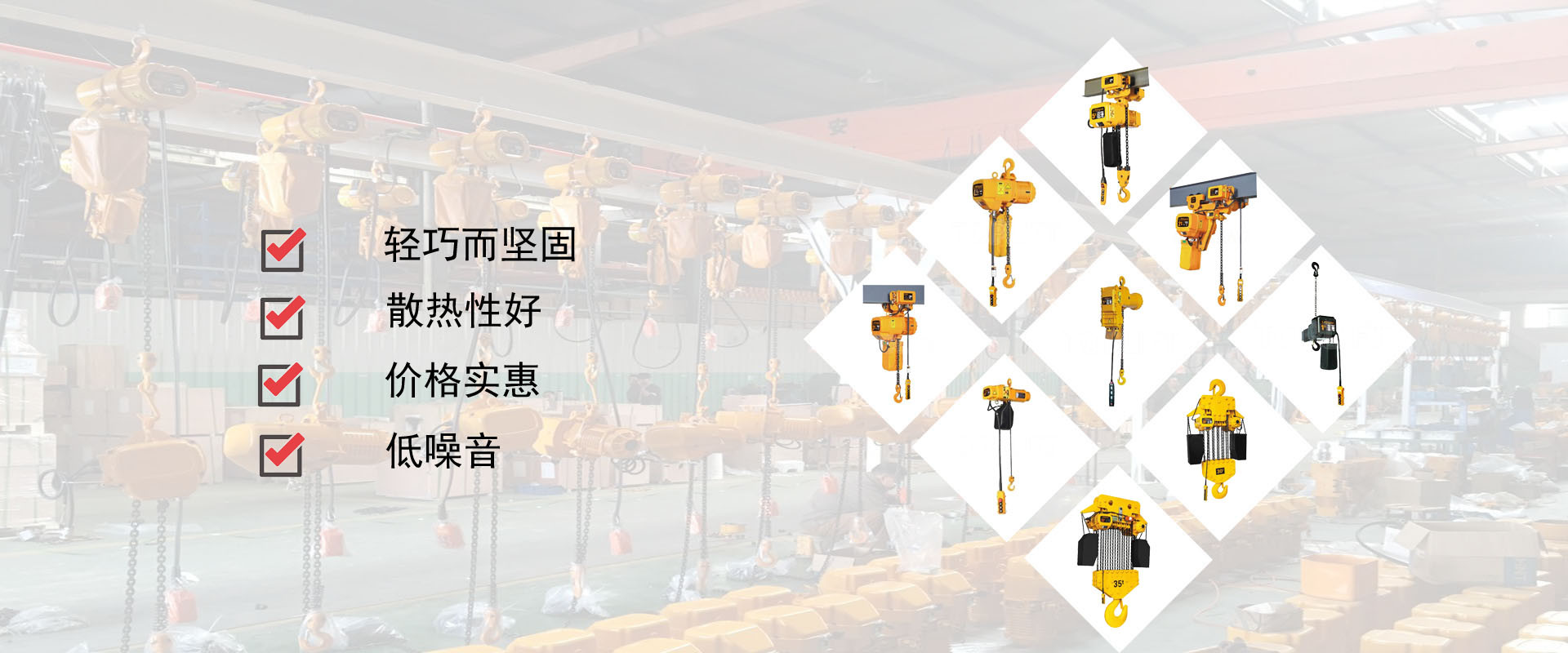 密歇爾起重機(jī)械(杭州)有限公司提供全面的起重輸送產(chǎn)品和服務(wù),產(chǎn)品覆蓋環(huán)鏈電動(dòng)葫蘆(125Kg-80T),歐式鋼絲繩葫蘆,防爆葫蘆,懸臂吊,KBK柔性起重機(jī),歐式起重機(jī),起重馬達(dá),端梁,起重移動(dòng)供電系統(tǒng)等,在國(guó)內(nèi)外被廣泛的應(yīng)用于生產(chǎn)車間,汽車,模具,機(jī)械制造,鐵路,船舶,物流搬運(yùn),現(xiàn)代化工廠流水線等工業(yè)及其它特殊用途。